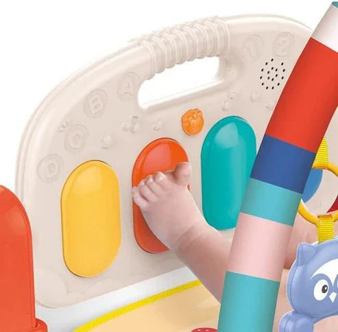 Piano Fitness Rack – Baby Play Gym & Activity Mat– A multi-functional play mat with piano keys, hanging toys, and soft cushioning, designed to support newborn development from day one.